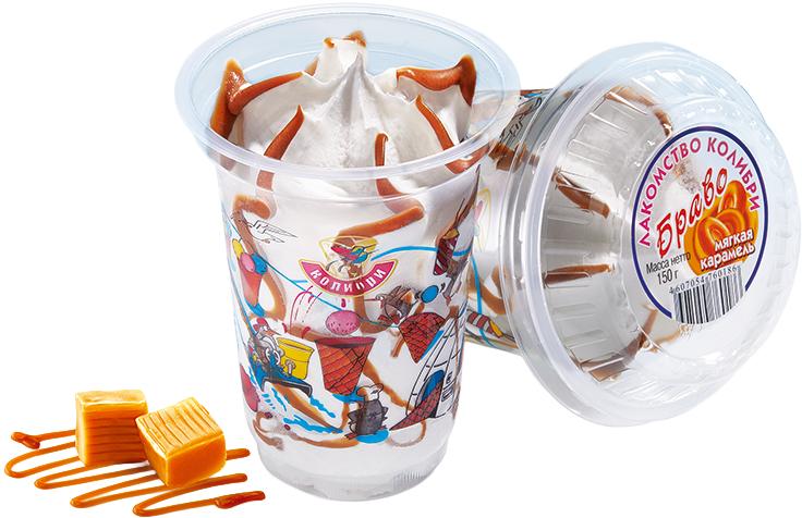 СОДЕРЖИТ РАСТИТЕЛЬНЫЕ МАСЛА восстановленное молоко (вода питьевая, молоко сухое обезжиренное), сахар, масло сливочное, заменитель молочного жира (рапсовое масло, кокосовое масло), вода питьевая, сыворотка молочная сухая, эмульгатор (моно-и диглицериды жирных кислот), стабилизаторы (гуаровая камедь, карбоксиметилцеллюлоза натриевая соль, каррагинан), ароматизатор пищевой «Ванилин»; Крем мягкая карамель: сахар, вода питьевая, патока крахмальная, молоко сухое обезжиренное, заменитель молочного жира (см состав выше), сыворотка молочная сухая, масло кокосовое рафинированное дезодорированное, стабилизатор СМ-110 (цитрат калия, тартраты натрия, декстроза, мальтодекстрин, эфиры глицерина),уплотнитель хлористый кальций, краситель карамельный колер, ароматизатор пищевой «Карамель»; Может содержать следы орехов, арахиса, яичных продуктов, сои, глютена