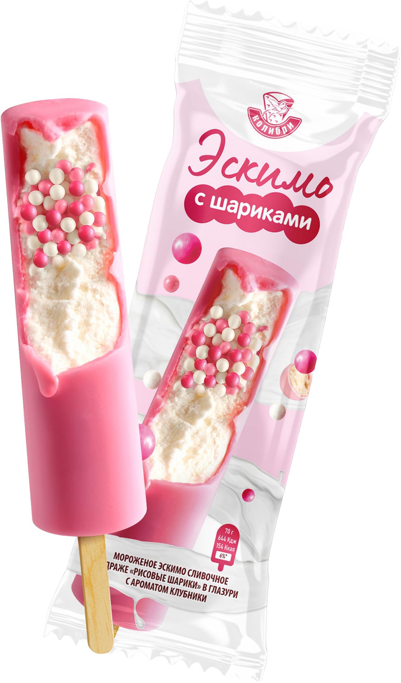 восстановленное молоко (вода питьевая, молоко сухое цельное, молоко сухое обезжиренное), сахар, масло сливочное, молоко сгущённое с сахаром из восстановленного обезжиренного молока (восстановленное обезжиренное молоко, сахар (сахароза)), эмульгатор (моно- и диглицериды жирных кислот), стабилизаторы (гуаровая камедь, карбоксиметилцеллюлоза натриевая соль, каррагинан), ароматизатор пищевой «Ванилин»; Глазурь с растительным жиром (для мороженого) с ароматом клубники: масло кокосовое рафинированное дезодорированное, сахар, молоко сухое обезжиренное, эмульгатор соевый лецитин, ароматизатор пищевой «Клубника», красители кармины Драже Рисовые шарики в разных видах шоколадной глазури с фруктовым вкусом: Белая шоколадная глазурь (сахар, заменитель масла какао, фракции масел растительных(пальмовое рафинированное, стеарин ши рафинированный, отбеленный, дезодорированный), антиокислитель (концентрат смеси токоферолов), регулятор кислотности лимонная кислота, сухое цельное молоко, масло какао, сухое обезжиренное молоко, сухая молочная сыворотка, лактоза, эмульгаторы лецитин соевый, Эфиры полиглицерина и взаимоэтерифицированных рициноловых кислот, ароматизатор «Ванилин»); рис воздушный (крупа рисовая, мука пшеничная х/п, сахар, соль); глазирующий агент (сироп глюкозы, глазирователь шеллак, регулятор кислотности лимонная кислота, стабилизатор гуммиарабик, рафинированные дезодорированные растительные масла (кокосовое масло, пальмовое масло), красители (кармины, индигокармин, бета- каротин); ароматизатор «Экстракт клубники», «Лесные ягоды». Возможны аллергены: орехов, арахиса, яичных продуктов, глютена