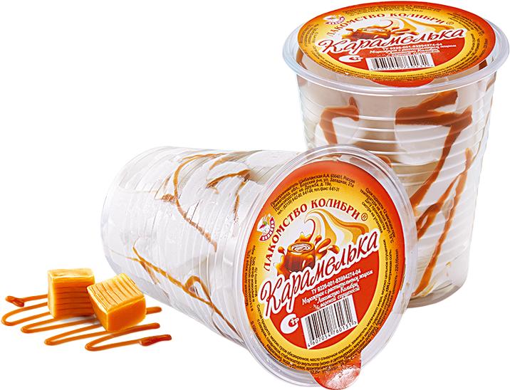 СОДЕРЖИТ РАСТИТЕЛЬНЫЕ МАСЛА : восстановленное молоко (вода питьевая, молоко сухое обезжиренное), сахар, масло сливочное, заменитель молочного жира (рапсовое масло, кокосовое масло), вода питьевая, сыворотка молочная сухая, эмульгатор (моно-и диглицериды жирных кислот), стабилизаторы (гуаровая камедь, карбоксиметилцеллюлоза натриевая соль, каррагинан), ароматизатор пищевой «Ванилин»; Крем мягкая карамель: сахар, вода питьевая, патока крахмальная, молоко сухое обезжиренное, заменитель молочного жира (см состав выше), сыворотка молочная сухая, масло кокосовое рафинированное дезодорированное, стабилизатор СМ-110 (цитрат калия, тартраты натрия, декстроза, мальтодекстрин, эфиры глицерина),уплотнитель хлористый кальций, краситель карамельный колер, ароматизатор пищевой «Карамель»; Может содержать следы орехов, арахиса, яичных продуктов, сои, глютена