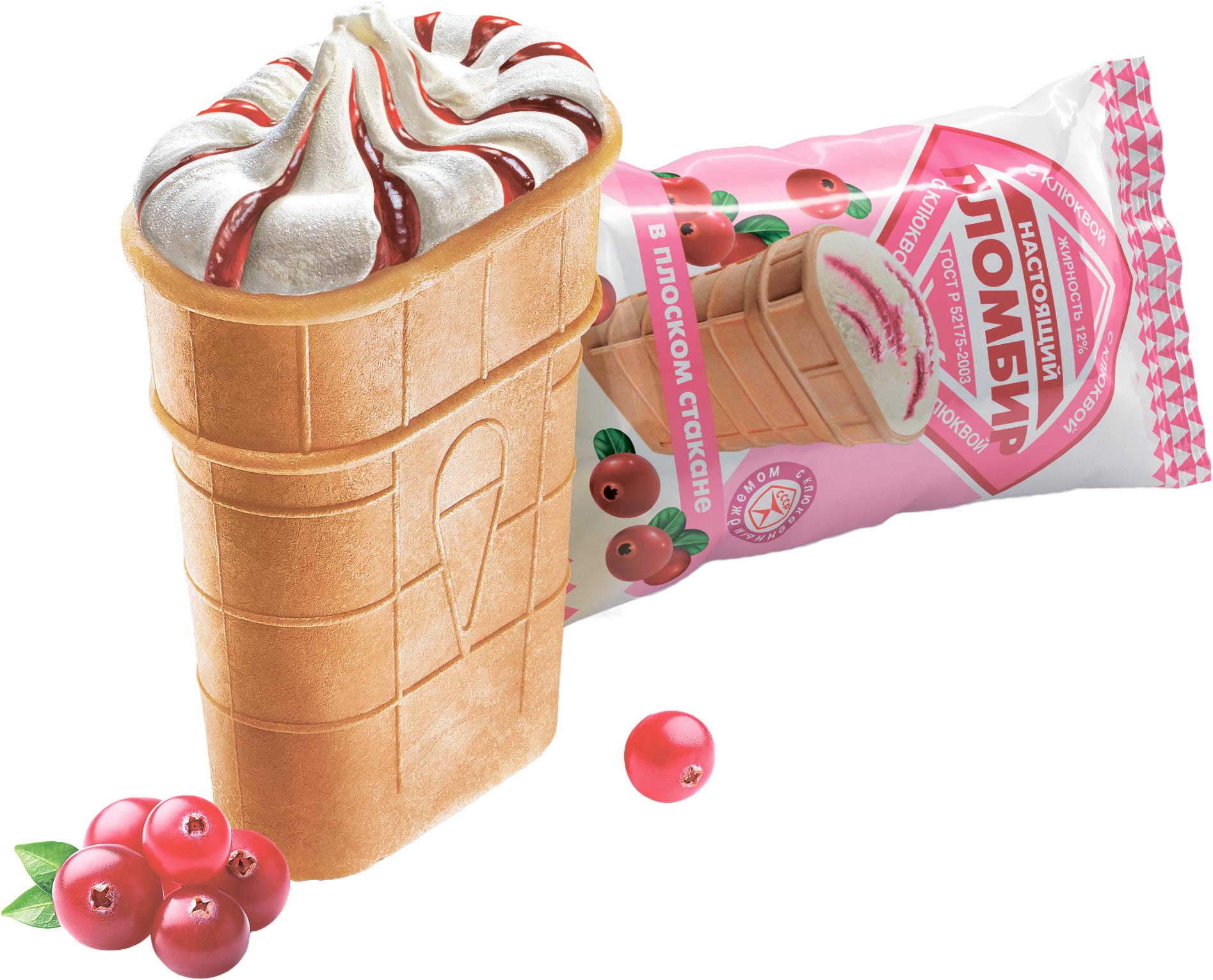 восстановленное молоко (вода питьевая, молоко сухое цельное, молоко сухое обезжиренное), масло сливочное, сахар, молоко сгущённое с сахаром из восстановленного обезжиренного молока (восстановленное обезжиренное молоко, сахар (сахароза)), эмульгатор (моно- и диглицериды жирных кислот), стабилизаторы (гуаровая камедь, карбоксиметилцеллюлоза натриевая соль, каррагинан), ароматизатор пищевой «Ванилин»; Фруктово-ягодный наполнитель клюква: сахар, вода питьевая, клюква, яблоко, стабилизатор пектин, регулятор кислотности лимонная кислота, цитрат натрия, краситель кармины, ароматизатор пищевой клюква; Вафельный стаканчик: мука пшеничная х/п в/с, крахмал картофельный, масло кокосовое рафинированное дезодорированное, эмульгатор соевый лецитин, разрыхлитель гидрокарбонат натрия, соль пищевая. Может содержать следы орехов, арахиса, яичных продуктов