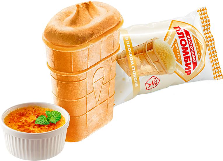 восстановленное молоко (вода питьевая, молоко сухое цельное, молоко сухое обезжиренное), сироп крем-брюле (молоко сгущённое с сахаром из восстановленного обезжиренного молока (восстановленное обезжиренное молоко, сахар (сахароза)), сахар, вода питьевая), масло сливочное, сахар, молоко сгущённое с сахаром из восстановленного обезжиренного молока (см. состав выше), эмульгатор (моно- и диглицериды жирных кислот), стабилизаторы (гуаровая камедь, карбоксиметилцеллюлоза натриевая соль, каррагинан), ароматизатор пищевой «Крем-брюле»; Вафельный стаканчик: мука пшеничная х/п в/с, крахмал картофельный, масло кокосовое рафинированное дезодорированное, эмульгатор соевый лецитин, разрыхлитель гидрокарбонат натрия, соль пищевая. Может содержать следы орехов, арахиса, яичных продуктов