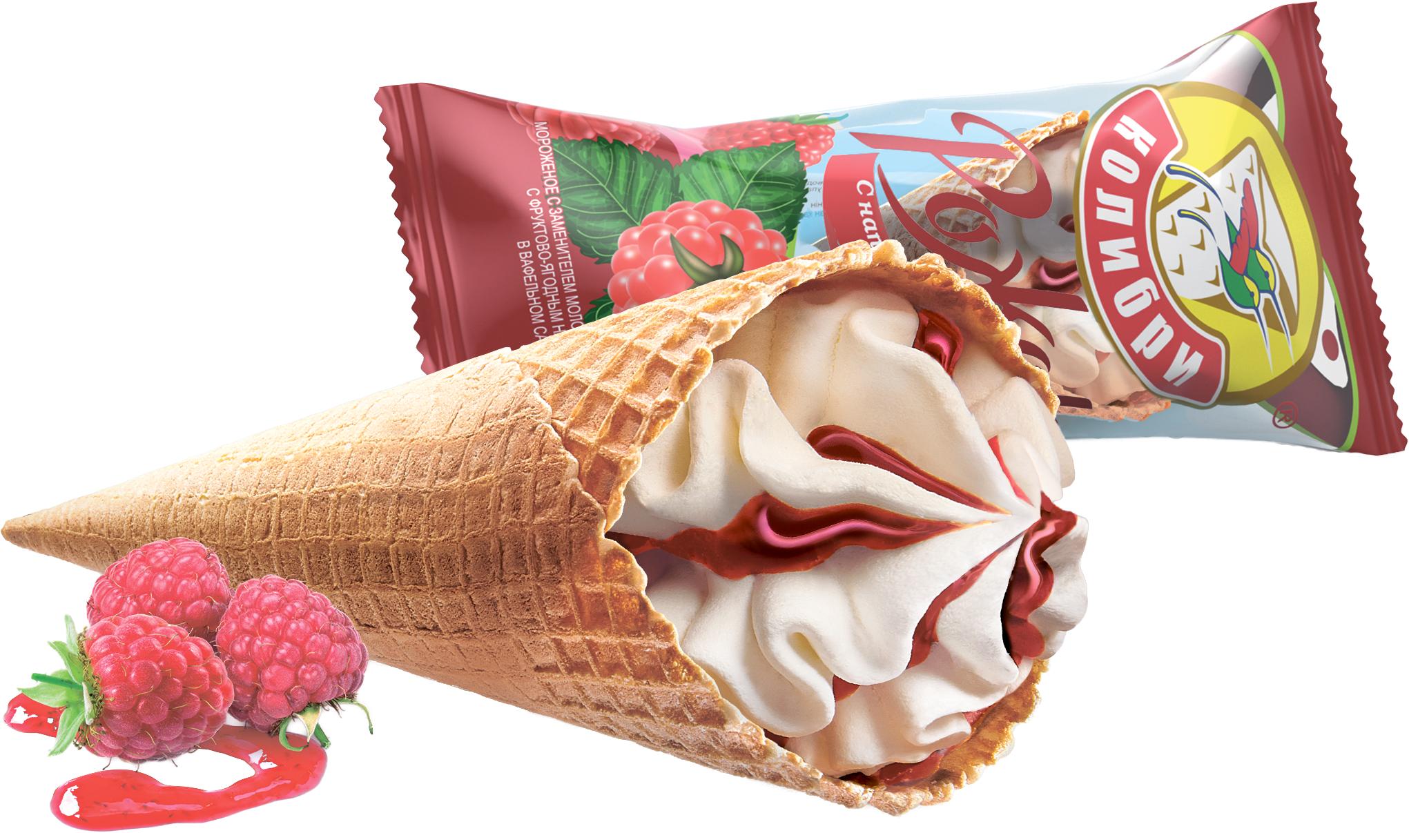СОДЕРЖИТ РАСТИТЕЛЬНЫЕ МАСЛА восстановленное молоко (вода питьевая, молоко сухое обезжиренное), сахар, масло сливочное, заменитель молочного жира (рапсовое масло, кокосовое масло), сыворотка молочная сухая, эмульгатор (моно-и диглицериды жирных кислот), стабилизаторы (гуаровая камедь, карбоксиметилцеллюлоза натриевая соль, каррагинан), ароматизатор пищевой «Ванилин»; Фруктово-ягодный наполнитель малина: сахар, вода, малина, яблоко, стабилизатор пектин, регулятор кислотности лимонная кислота, цитат натрия, ароматизатор пищевой «Малина», краситель «Кармин», «Антоциан»; Вафельный сахарный рожок: мука пшеничная х/п 1с, сахар, масло кокосовое рафинированное дезодорированное, эмульгатор соевый лецитин, пищевые волокна (клетчатка), ароматизатор пищевой "Ванилин"; Шоколадная глазурь с растительным жиром (для мороженого): масло кокосовое рафинированное дезодорированное, сахар, какао-порошок, эмульгатор соевый лецитин, ароматизатор пищевой «Ванилин». Может содержать следы орехов, арахиса, яичных продуктов