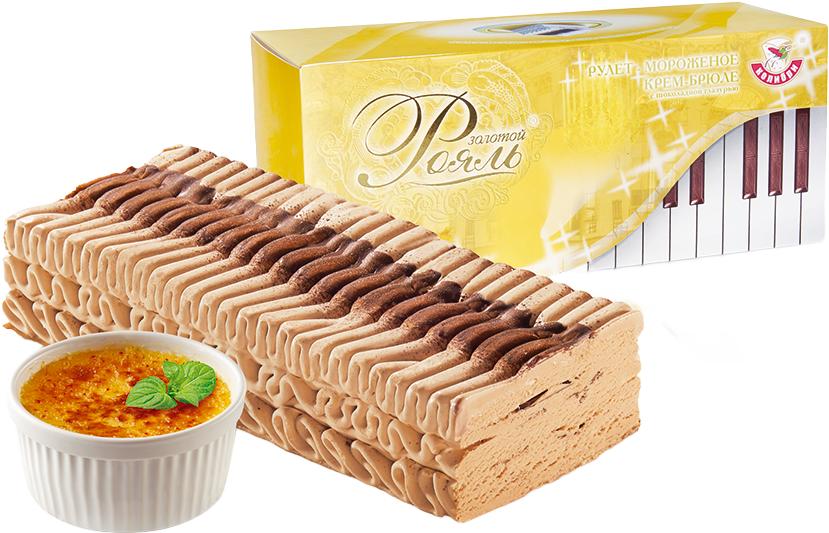 СОДЕРЖИТ РАСТИТЕЛЬНЫЕ МАСЛА восстановленное молоко (вода питьевая, молоко сухое обезжиренное), сироп крем-брюле (молоко сгущённое с сахаром из восстановленного обезжиренного молока (восстановленное обезжиренное молоко, сахар (сахароза)), сахар, вода питьевая), масло сливочное, заменитель молочного жира (рапсовое масло, кокосовое масло), сахар, сыворотка молочная сухая, эмульгатор (моно- и диглицериды жирных кислот), стабилизаторы (гуаровая камедь, карбоксиметилцеллюлоза натриевая соль, каррагинан), ароматизатор пищевой «Крем-брюле». Шоколадная глазурь с растительным жиром (для мороженого): масло кокосовое рафинированное дезодорированное, сахар, какао-порошок, эмульгатор соевый лецитин, ароматизатор пищевой «Ванилин». Может содержать следы орехов, арахиса, яичных продуктов, глютена