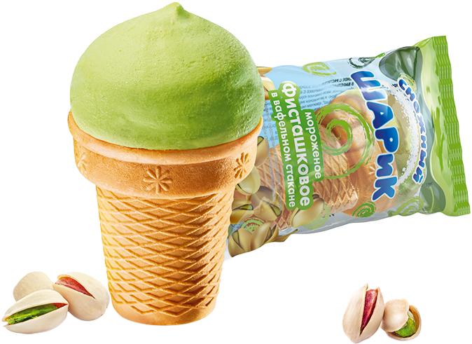 СОДЕРЖИТ РАСТИТЕЛЬНЫЕ МАСЛА восстановленное молоко (вода питьевая, молоко сухое обезжиренное), сахар, масло сливочное, заменитель молочного жира (рапсовое масло, кокосовое масло), сыворотка молочная сухая, эмульгатор (моно-и диглицериды жирных кислот), стабилизаторы (гуаровая камедь, карбоксиметилцеллюлоза натриевая соль, каррагинан), ароматизатор пищевой «Фисташка», красители медные комплексы хлорофиллинов, бета-каротин; Вафельный стаканчик: мука пшеничная х/п в/с, крахмал картофельный, масло кокосовое рафинированное дезодорированное, эмульгатор соевый лецитин, разрыхлитель гидрокарбонат натрия, соль пищевая. Может содержать следы орехов, арахиса, яичных продуктов