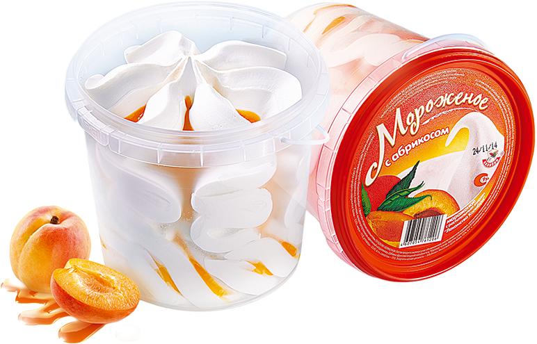 СОДЕРЖИТ РАСТИТЕЛЬНЫЕ МАСЛА восстановленное молоко (вода питьевая, молоко сухое обезжиренное), сахар, масло сливочное, заменитель молочного жира (рапсовое масло, кокосовое масло), вода питьевая, сыворотка молочная сухая, эмульгатор (моно-и диглицериды жирных кислот), стабилизаторы (гуаровая камедь, карбоксиметилцеллюлоза натриевая соль, каррагинан), ароматизатор пищевой «Ванилин»; Фруктово-ягодный наполнитель «Абрикос»: сахар, вода, абрикос, яблоко, стабилизатор пектин, регулятор кислотности лимонная кислота, цитрат натрия, красители каротины, экстракт паприки, ароматизатор пищевой «Абрикос». Может содержать следы орехов, арахиса, яичных продуктов, сои, глютена